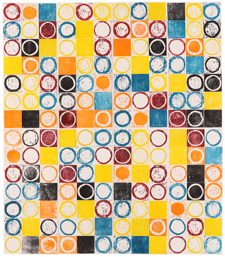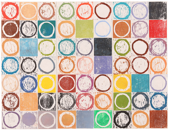 Los círculos son un diseño universal y rítmico, cuya forma ha representado continuidad y unidad a travez de los siglos. Mis grabados están inspirados por los arquetipos cargados de significado que traspasa las barreras generacionales e idiomáticas. Los colores que selecciono también honran esta tradición universal que nos une a nivel del subconsciente. Intento representar lo que no se puede iterar con palabras. El grabado es un medio ideal para presentar variaciones sobre este tema. Los elementos de mi obra son crípticos pero a la vez son reconocibles por nuestra alma interior.